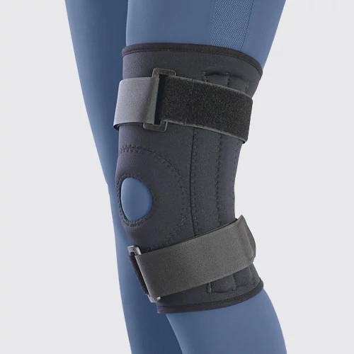 حمایت و نگهداری زانو توسط چهار تسمه فنری انعطاف پذیر در داخل و خارج زانو از ویژگی های خاص این زانوبند است.