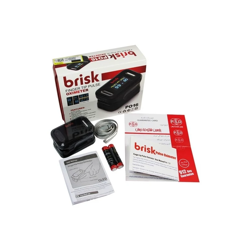 طرز کار دستگاه اندازه گیری اکسیژن خون brisk دستگاه پالس اکسی متر را روی انگشت دست (بهترین انتحاب انگشت اشاره است)، انگشت شست پا یا لاله گوش قرار دهید به صورتی که ناخن دست ها یا پا به سمت بالا باشد بعد از گذشت چند ثانیه روی صفحه ی نمایش گر دستگاه، مقدار اکسیژن خون نمایش داده می شود علاوه بر مقدار اکسیژن اشباع خون، این دستگاه ضربان قلب را نیز نمایش می دهد پس از تمام شدن کار و اندازه گیری، گیره را از روی انگشت خود بردارید