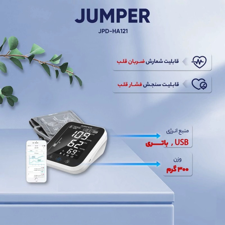 به کمک فشارسنج جامپر مدل 1 میتوانید میزان فشار بالا و پایین خون و ضربان قلب را به دقت اندازهگیری کرده و به کمک فناوری بلوتوث 📱 در موبایل همراه خود ذخیره کنید.