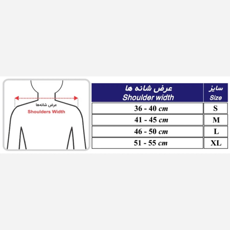 پیش از خرید وسیله به جدول انتخاب سایز بر اساس عرض شانهها توجه نمایید